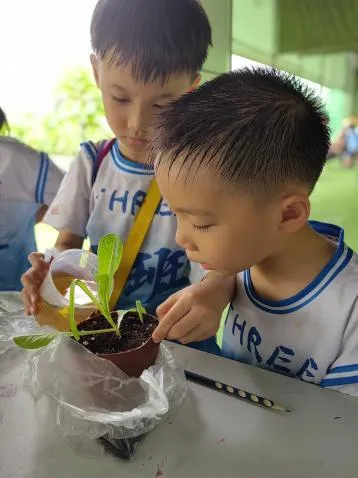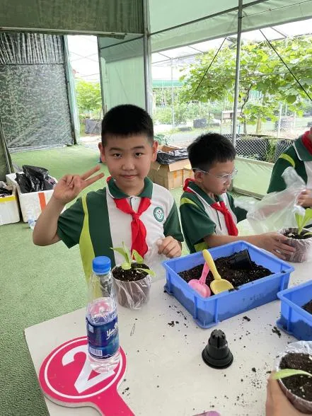 收获的喜悦还没过呢,孩子们又体验到了种植的快乐。在教官的指导下,孩子们学习种植盆栽,配置营养液。开启了探究体验之旅。在过程中,他们学习了盆栽的技术要领,认识盆栽种植技术,感受科技和农业的奇妙融合,了解农业发展与种植的进步。