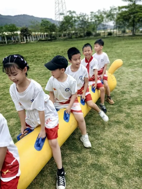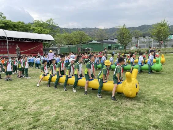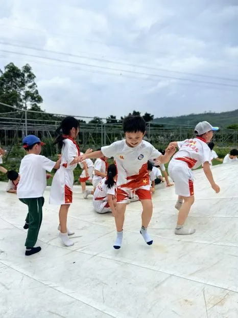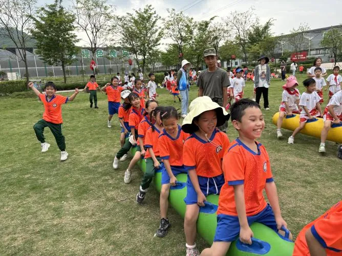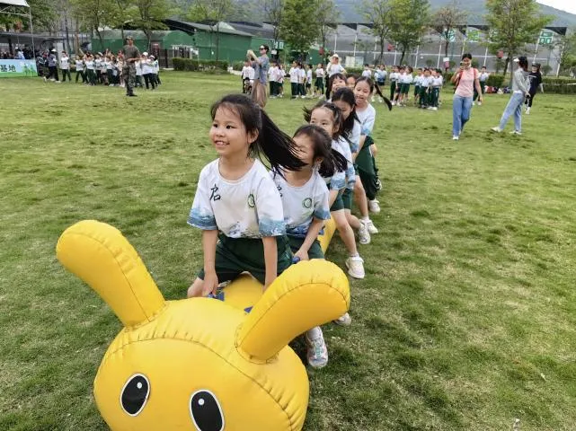 到了下午的毛毛虫接力比赛中,孩子们也精气神十足。他们喊着响亮的口号,迈着整齐又别扭的步伐,向目的地冲刺。比赛的同学团结协作、全力以赴,观赛的同学卖力喝彩,他们尽情解放天性,到处洋溢着笑声。