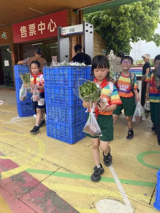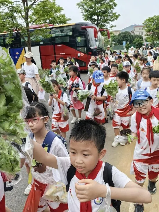 回程啦,临走之际,孩子们带着自己挖的小土豆,种的小菜苗以及园区人们热情分发的水晶生菜坐上了回家的大巴车!