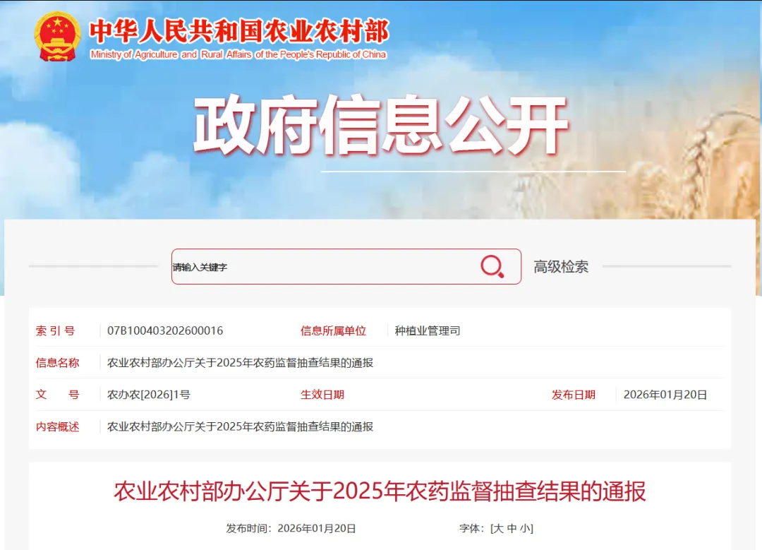 为加强农药管理,保证农药质量,2025年我部组织河北等22个省(自治区、直辖市)农业农村部门及有关检验检测机构,对农药产品质量进行了监督抽查,现将有关情况通报如下。