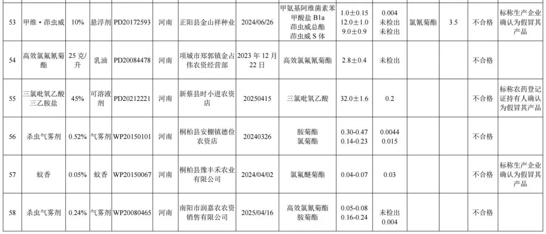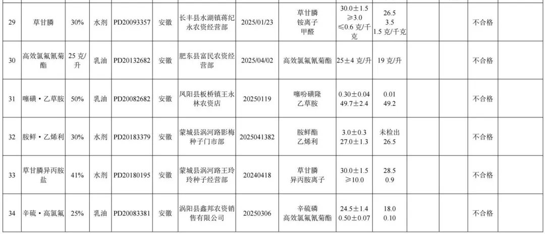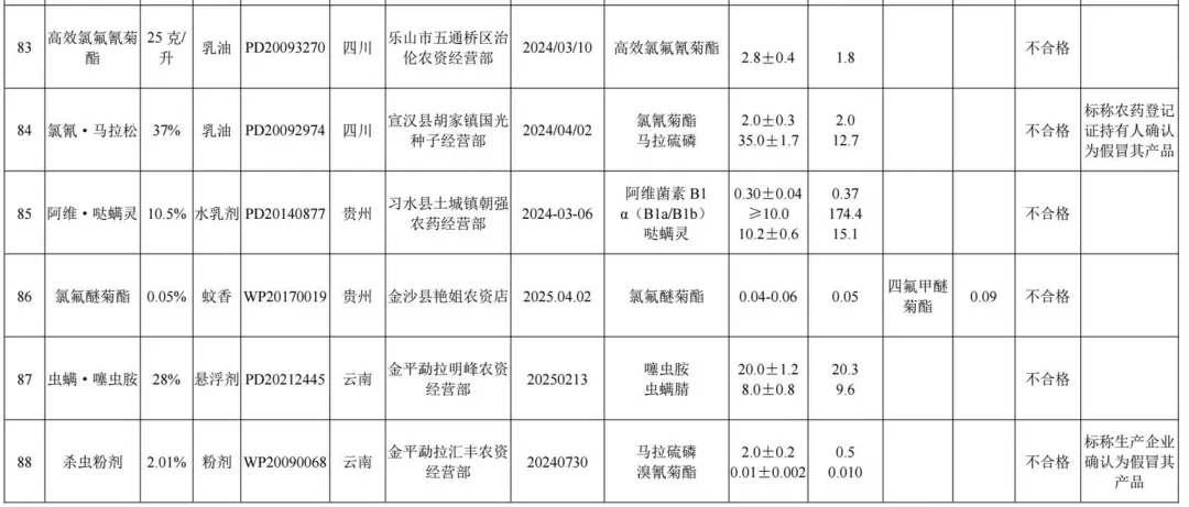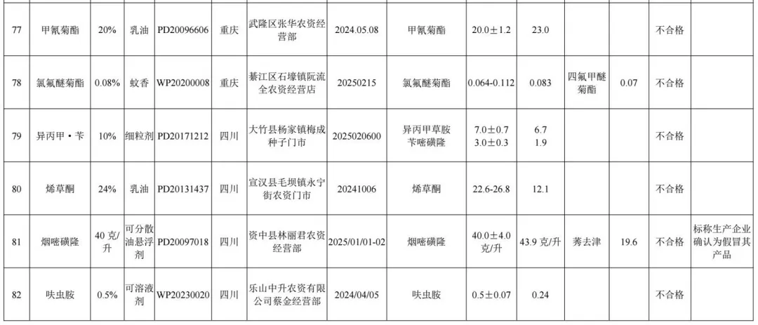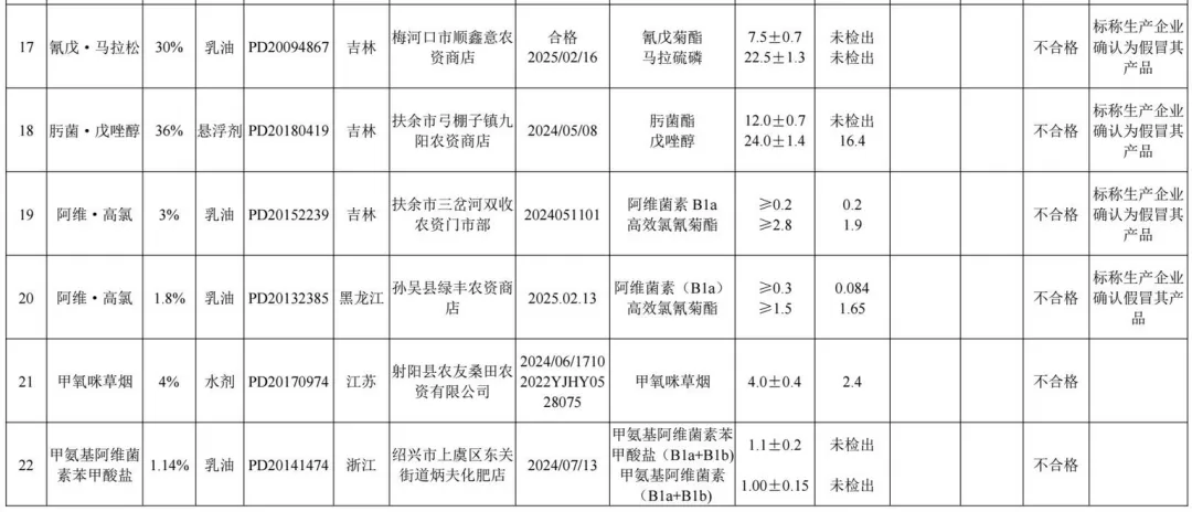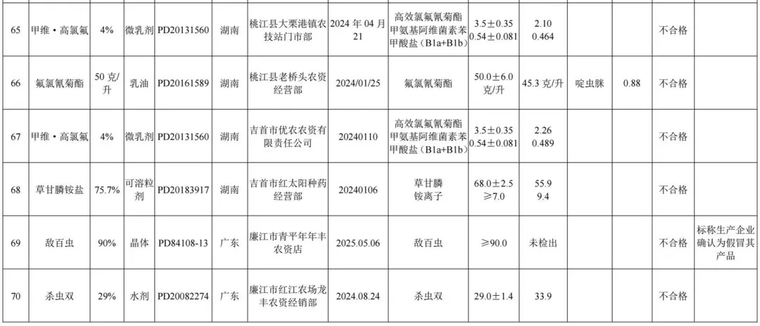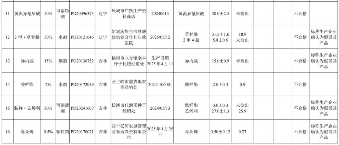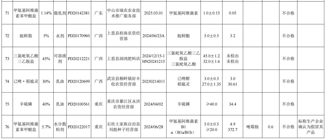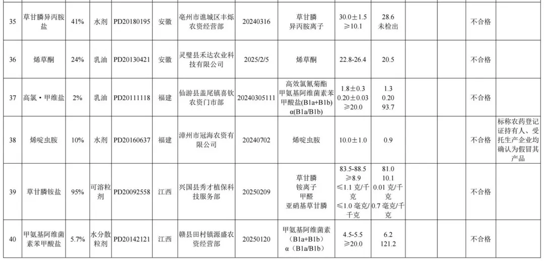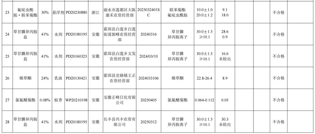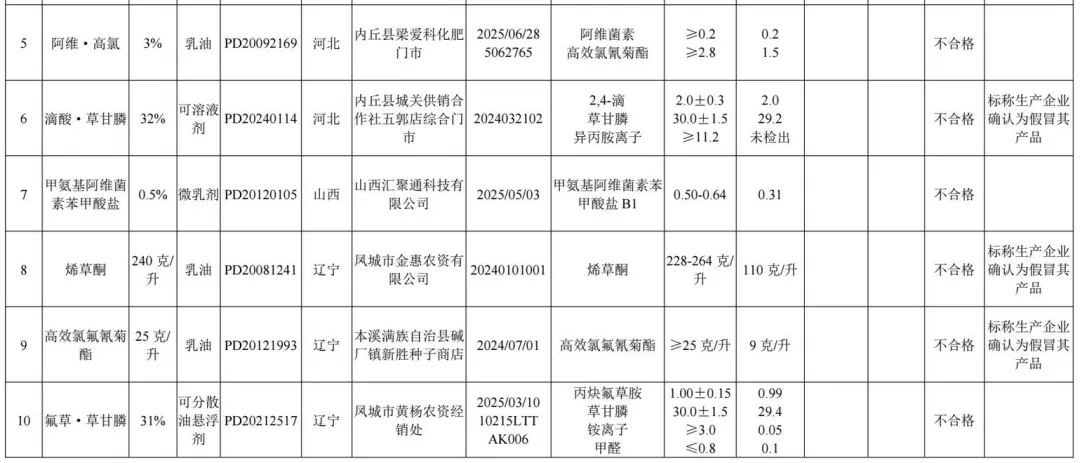 1.2025年农药监督抽查质量不合格产品名单
