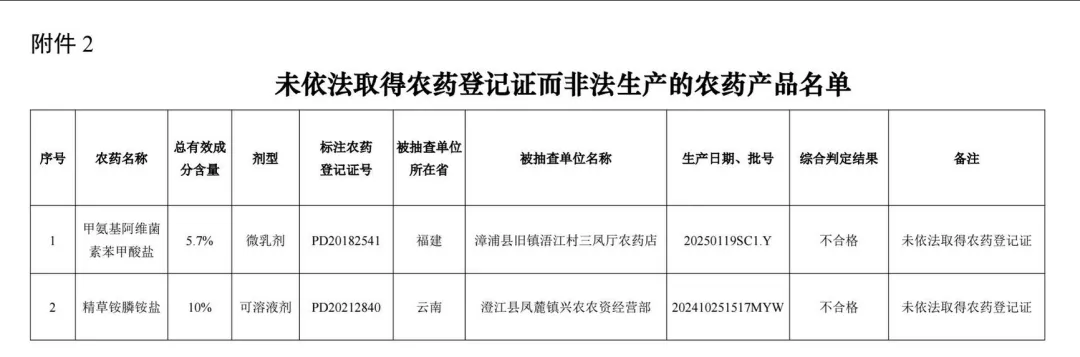 2.未依法取得农药登记证而非法生产的农药产品名单