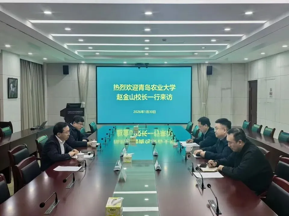2026年1月30日,青岛农业大学党委书记潘军、校长赵金山带队赴中国农业科学院考察调研。中国科学院院士、中国农业科学院院长黄三文会见潘军一行。校党委委员、副校长隋国武陪同考察。