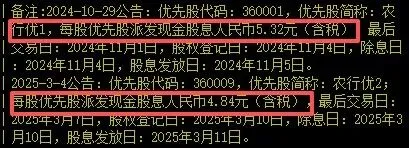 注:六大行对“优先股”的红利分配,都是很慷慨大方的,具体的什么是“优先股”?哪些机构或者个人可以购买优先股,大家在网上查看资料。我只附录2024年农业银行对“优先股”的分红方案。