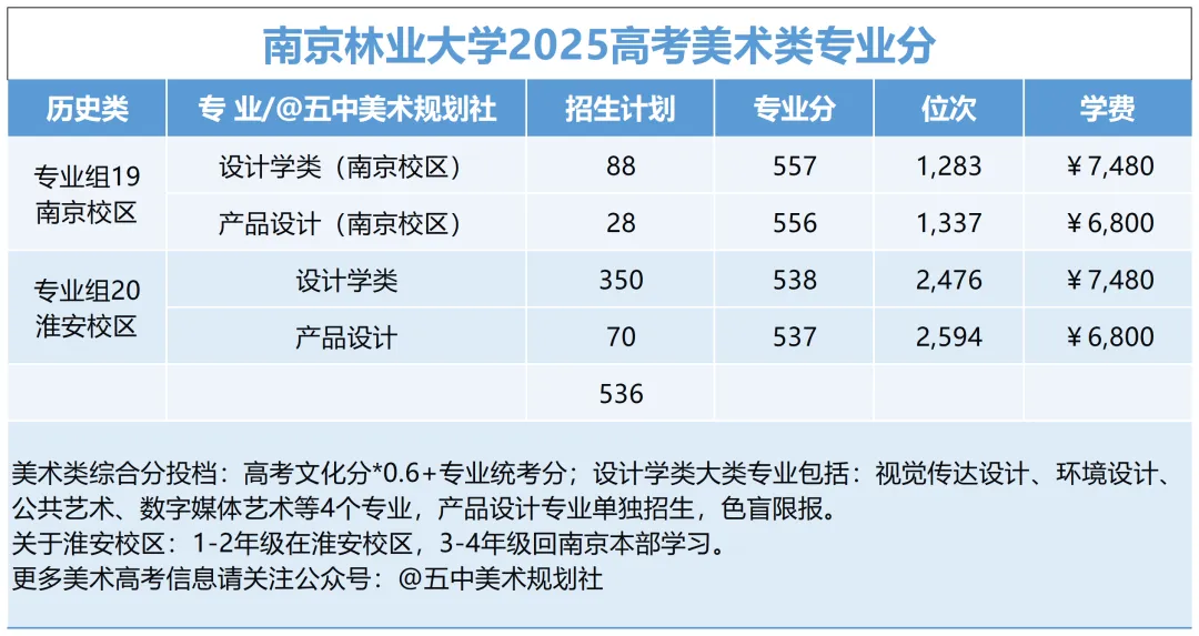 下面我介绍一下2025年南京林业大学省内美术类招生录取情况: