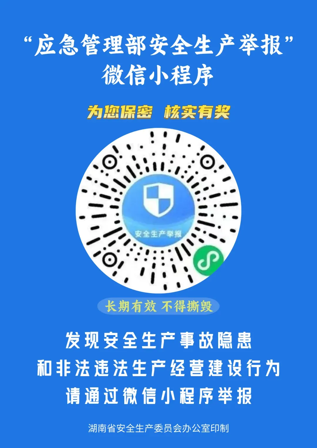 发现安全生产违法行为、重大安全生产隐患、生产安全事故瞒报,请拨打12350或12345举报;跨县市区、涉中央驻衡和省市属企业的,可拨打0734-8869036电话举报。查证属实的按有关规定给予奖励,最高奖励30万元!
