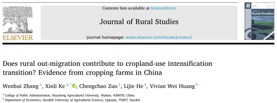 英文题目:Does rural out-migration contribute to cropland-use intensification transition? Evidence from cropping farms in China