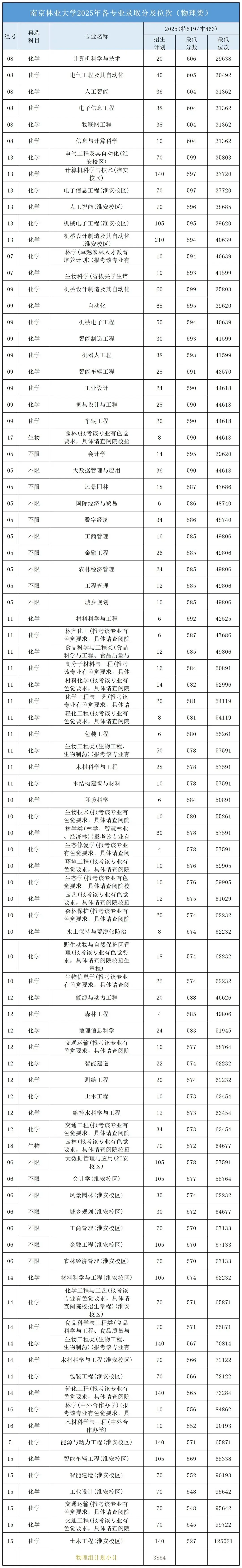2025年南京林业大学物理类3864个专业招生计划,投档最高分606分,最低位次29638,计算机科学与技术专业;投档最低分土木工程(淮安校区)527分,最低位次125021。