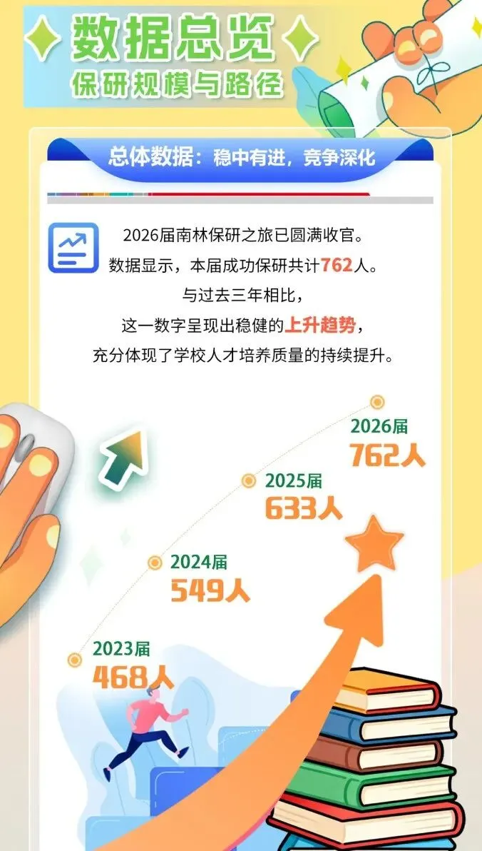 2026届南京林业大学成功保研人数达 762 人,与近三届相比持续稳步上升,人才培养质量再度印证“硬实力”!
