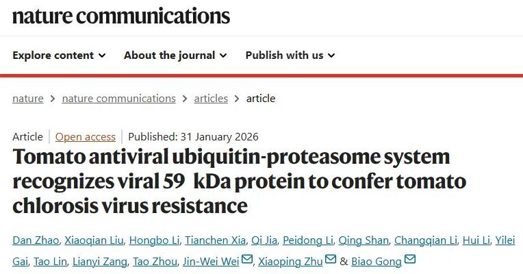 Nature Commun | 山东农业大学巩彪团队揭秘番茄抗毒新机制