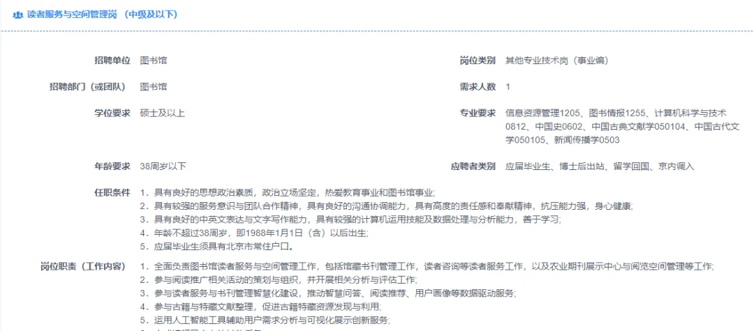 【招聘信息:2026高校馆】中国农业大学图书馆招聘启事(3.10截止)
