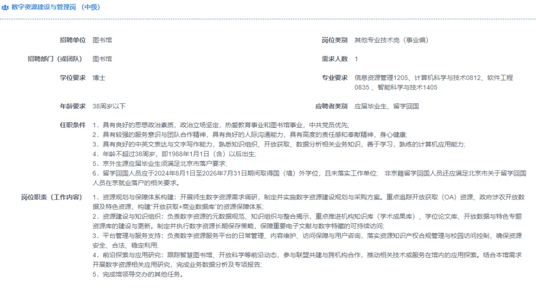 (1人);数字资源建设与管理岗(1人)