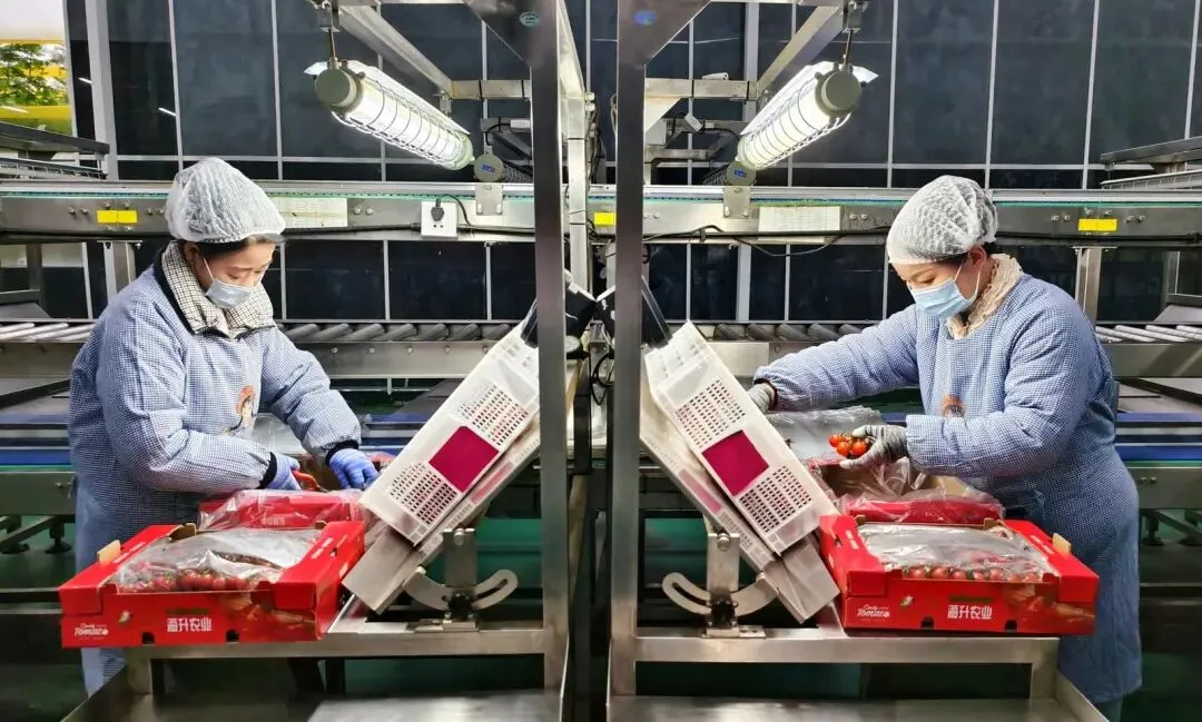 在深耕特色番茄产业,实现自身高质量发展的同时,古浪越海农业有限公司始终坚守“企地共生、互利共赢”的理念,将企业发展成果持续惠及周边村民。“这里待遇好,工作环境也好,一个月下来收入很可观,能在家门口找到这样的工作,我特别满意。眼看快过年了,大家干劲也足,都想多挣点钱,好好过年。”干城镇爱民新村村民杨小霞谈起工作,脸上洋溢着笑容。在越海农业,像杨小霞这样实现就近就业的村民还有很多,大家足不出村就能稳定增收,牢牢端稳了家门口的“就业饭碗”。真正让火红的串收番茄成为当地群众增收致富的“幸福果”。