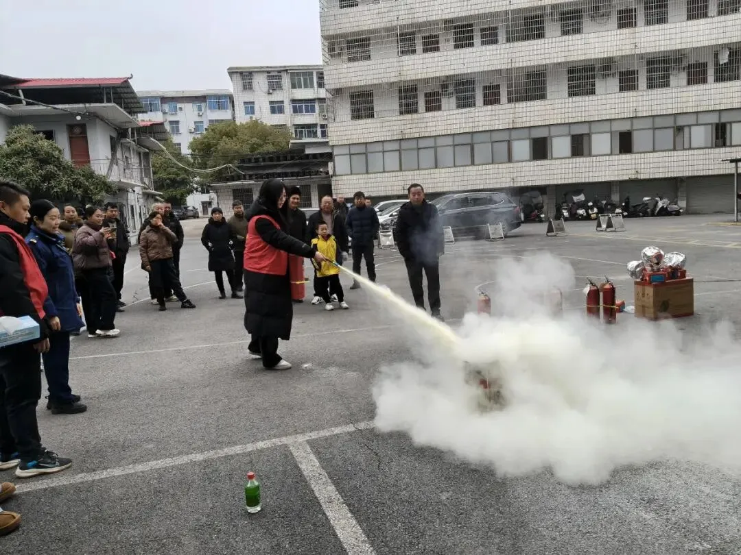 活动伊始,专业消防员向居民和员工讲解了家庭用电用火安全并现场演示了灭火器、防烟面罩等器材的正确使用方法,在农行广场设置的模拟火场中,消防志愿者点燃了模拟火源,并现场演示了灭火器“提、拔、握、压”的操作步骤。随后,居民和银行员工分组进行实操,在志愿者指导下,大家轮流使用灭火器扑灭明火,亲身体验了初期火灾的扑救过程。针对社区老旧住宅较多的特点,演练还设置了逃生场景。模拟火情发生后,居民在志愿者的引导下,用湿毛巾捂住口鼻,弯腰低姿沿疏散通道有序撤离。