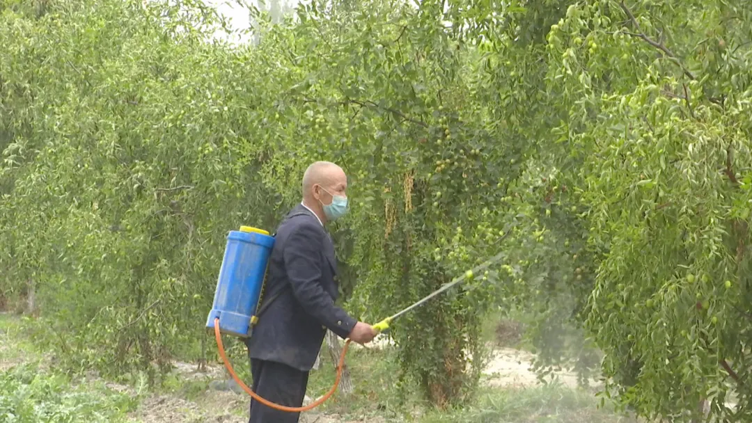 岳普湖县也克先拜巴扎镇尕勒艾日克村村民吐尔迪·库尔班说:“前面因为防疫工作的需要,未能对农作物进行有效管理,红枣也出现了病虫害,村干部及时发现并引导我们分散打药。在做好防疫工作的同时,我们在做红枣的夏季管理,努力实现红枣丰收。”