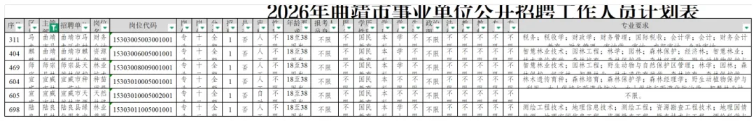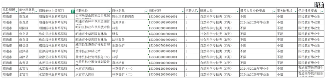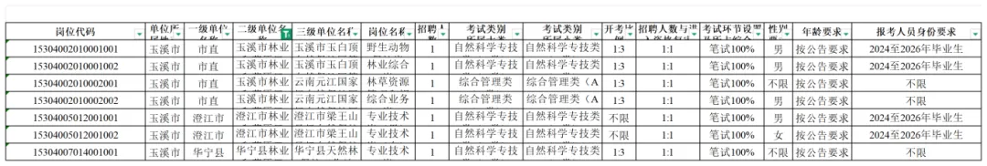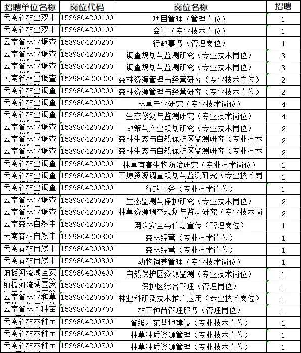 ⚡云南省林业和草原局所属事业单位招聘岗位表