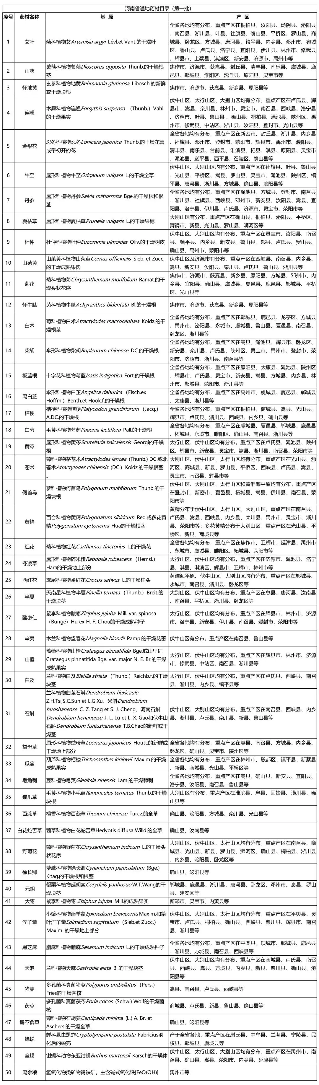 附件:河南省道地药材目录(第一批)