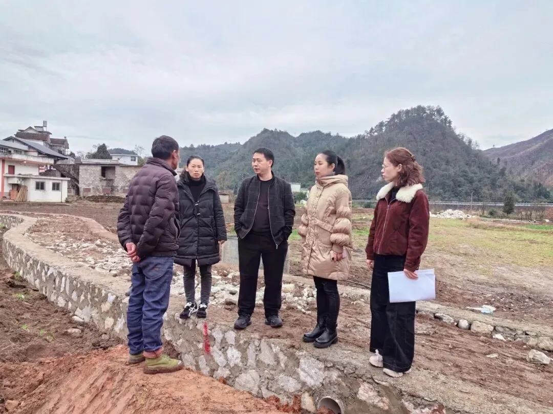 局党组书记、局长蔡莉玲到墨冲镇新坪村同墨冲镇人民政府协调解决2025年高标准农田建设项目施工问题。
