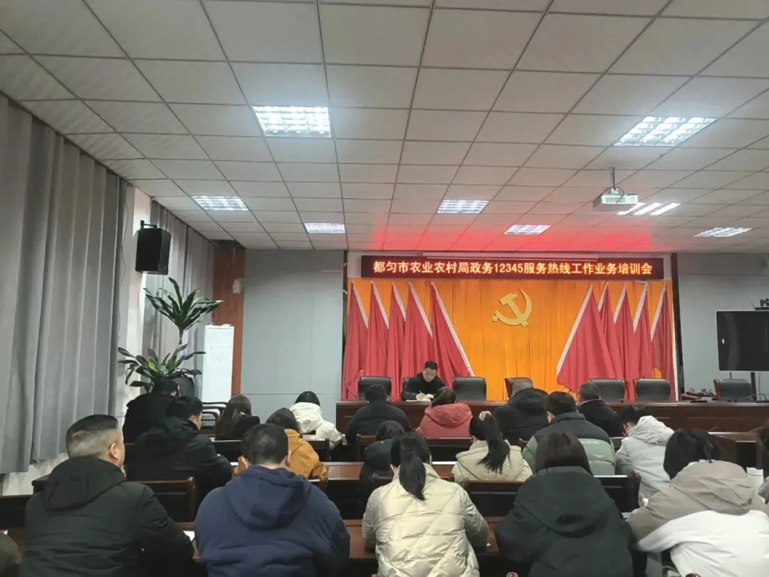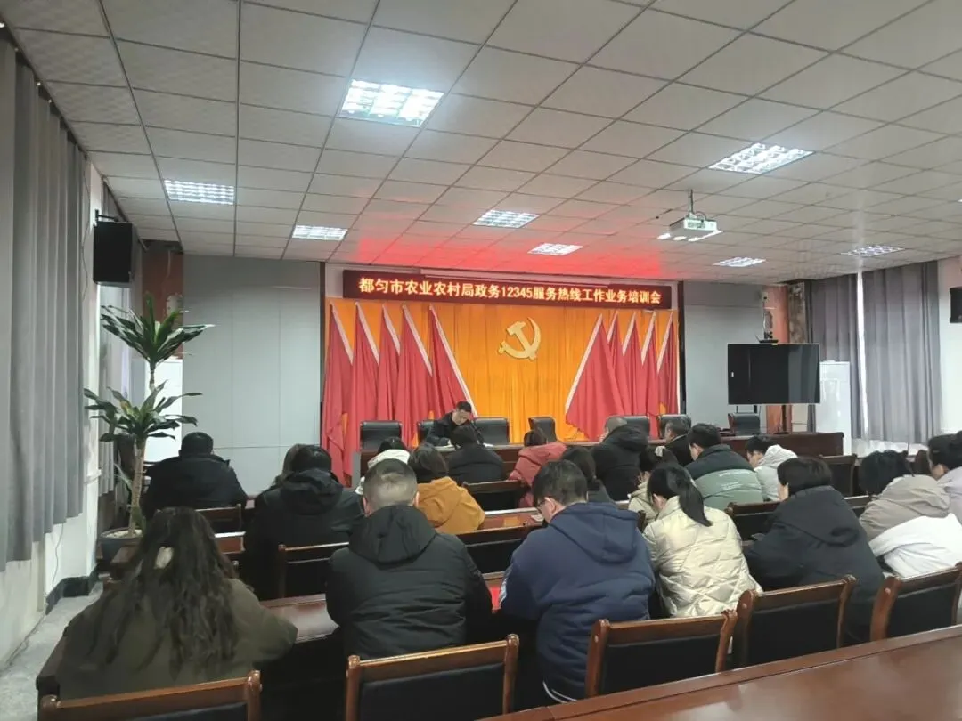 局党组成员、农业综合行政执法大队大队长刘剑主持召开都匀市农业农村局政务12345服务热线工作业务培训会。