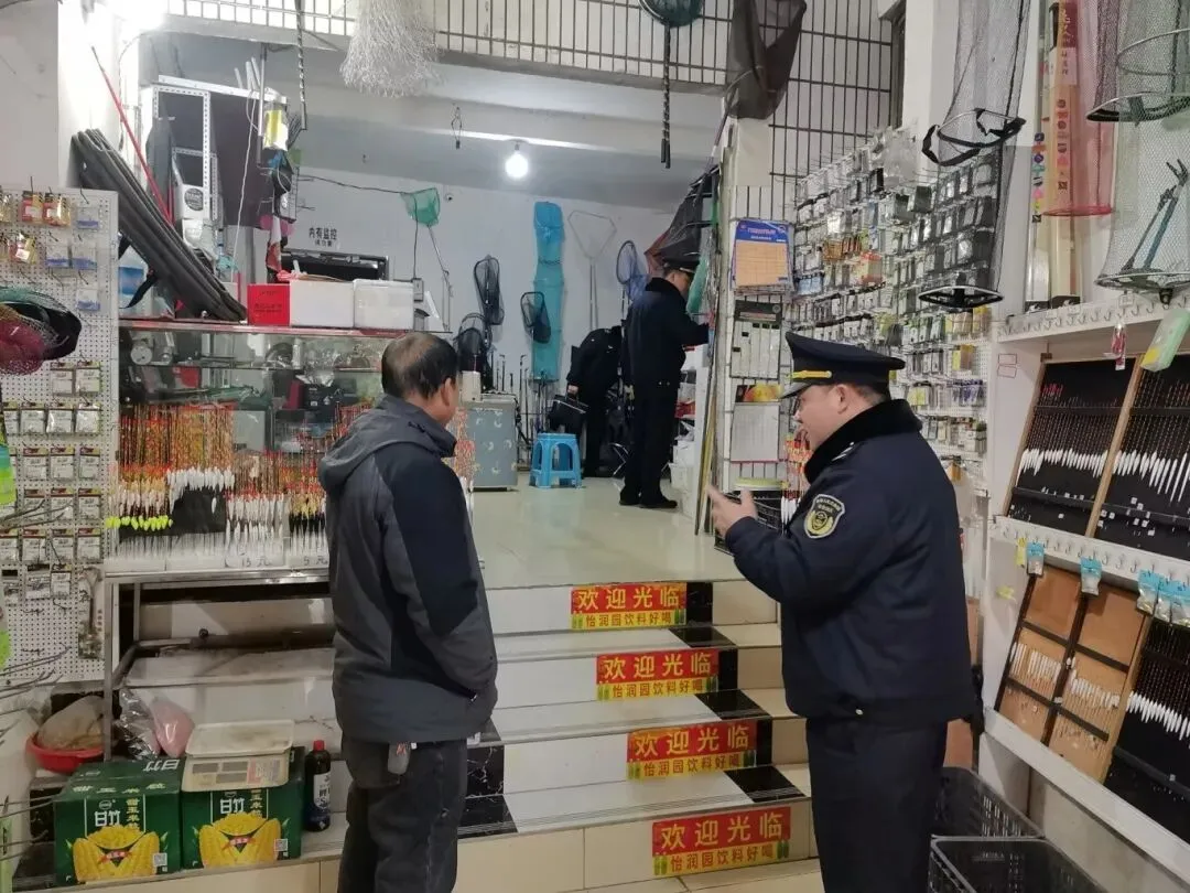 农业综合行政执法大队到沙包堡街道开展渔具店巡查并宣传法律法规,到马鞍山安置区处理市民投诉事宜。