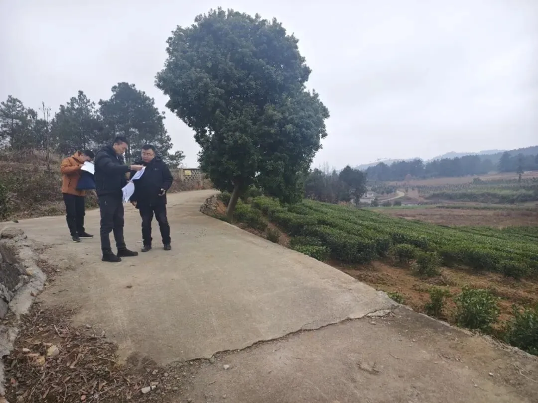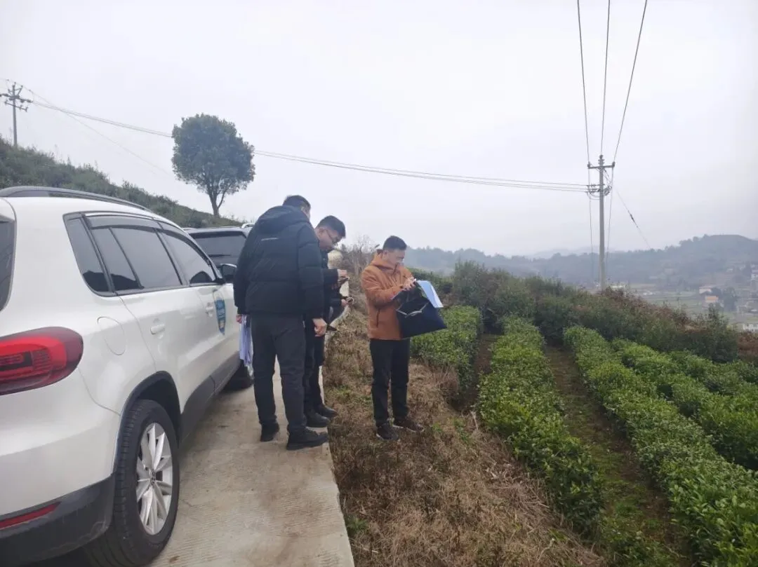 茶产业发展服务中心到匀东镇明英村、摆茶村核实2025年都匀市茶园提质增效项目实施面积。
