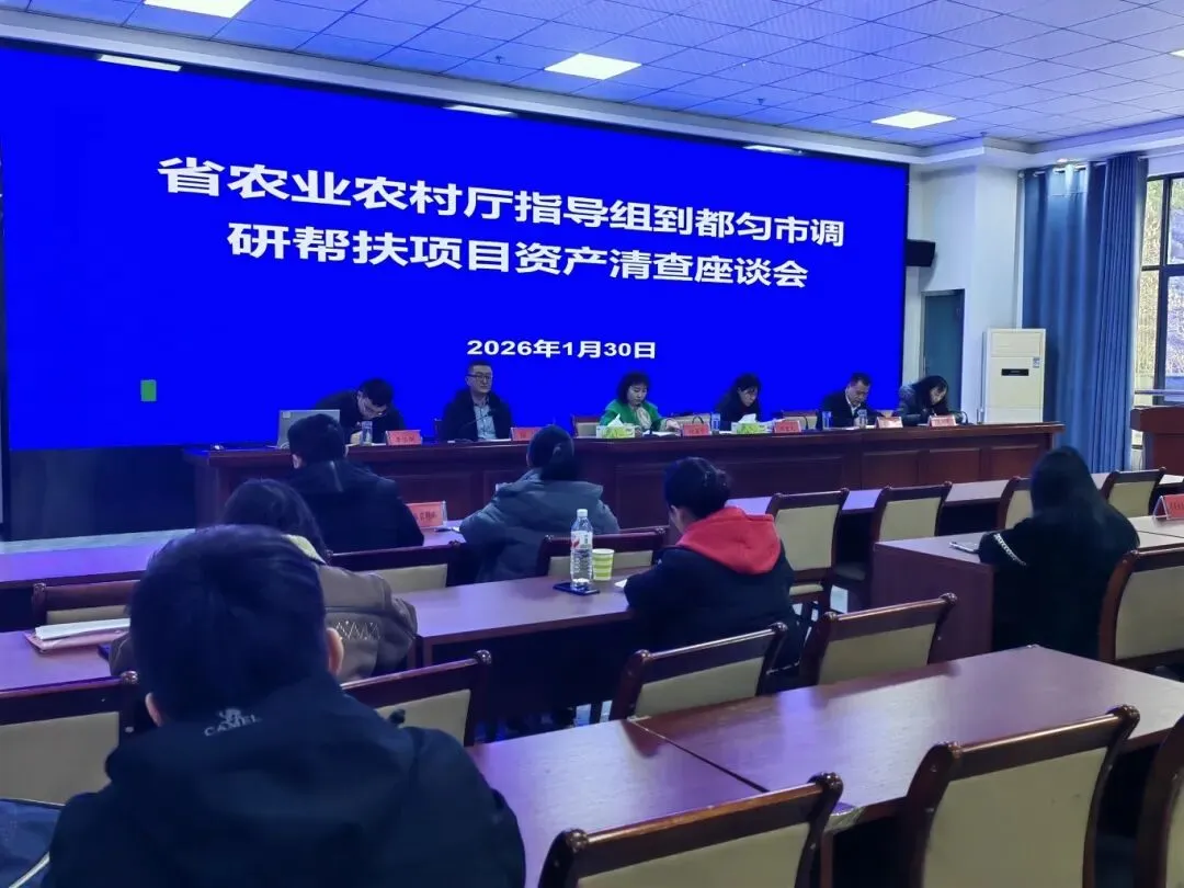 省农业农村厅指导组到都匀市开展帮扶项目资产清查座谈会,州农业农村局副局长欧阳元辉,市人民政府副市长张建,市农业农村党组书记、局长蔡莉玲参会。