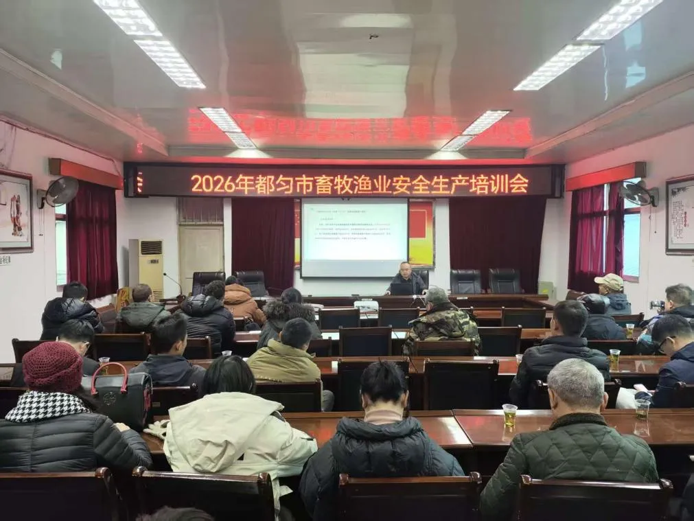 市农业农村局组织召开2026年都匀市畜牧渔业安全生产培训会,全市21家畜牧渔业养殖场相关人员参加培训。