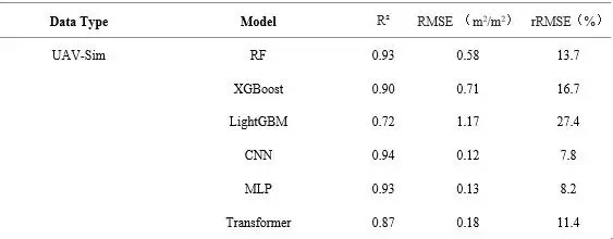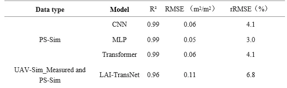 表1 无人机模拟及其他模型在LAI预测任务中的建模性能