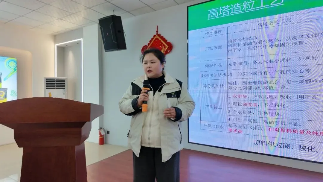 随后,大家移步会议室,由金昇市场部范梦珂为大家详细讲解高塔复合肥的核心工艺。