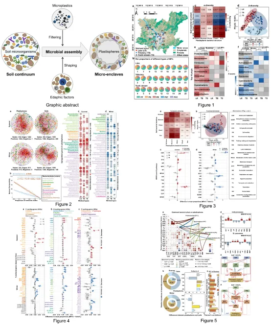 本文系统研究了长沙市城区27个湿地采样点微塑料表面塑料际与邻近土壤细菌群落。通过解析群落组装过程及其驱动因素,研究发现塑料际对土壤细菌具有选择性招募效应,其细菌丰富度仅为邻近土壤的51.6%–69.3%,但其多样性与“来源群落”的多样性仍呈正相关,表明塑料际同时受到周围土壤供源与界面过滤的共同制约。土壤养分与水热条件改善可降低塑料际菌群的扩散限制并增强同质化选择。网络分析进一步显示塑料际菌群间具有更强的正相关互作与更高的结构稳健性,体现受限微生境中的“生态位凝聚”。在功能层面,塑料际在不同湿地类型与季节中普遍呈现更强的复杂有机物利用潜力,并随土壤养分背景发生“强弱分化”:可利用氮水平较高的湿地增强更明显,而土壤碳可利用性升高则可能抑制这一趋势。研究推断有机质降解可为硝酸盐/亚硝酸盐还原提供电子来源,并在土壤通气良好的条件下更为突出。此外,塑料表面可能吸附有机磷并降低其可利用性,更倾向于强化膦酸盐获取与利用相关能力,并富集多类具膦酸盐降解潜力的菌属,体现其对局地养分约束的适应性代谢策略。该研究把塑料际明确为土壤中受环境梯度重塑的“微尺度生物地球化学反应单元”,其微生物组装与功能轨迹的改变具有牵动土壤生物地球化学循环与土壤生物健康的潜在效应。