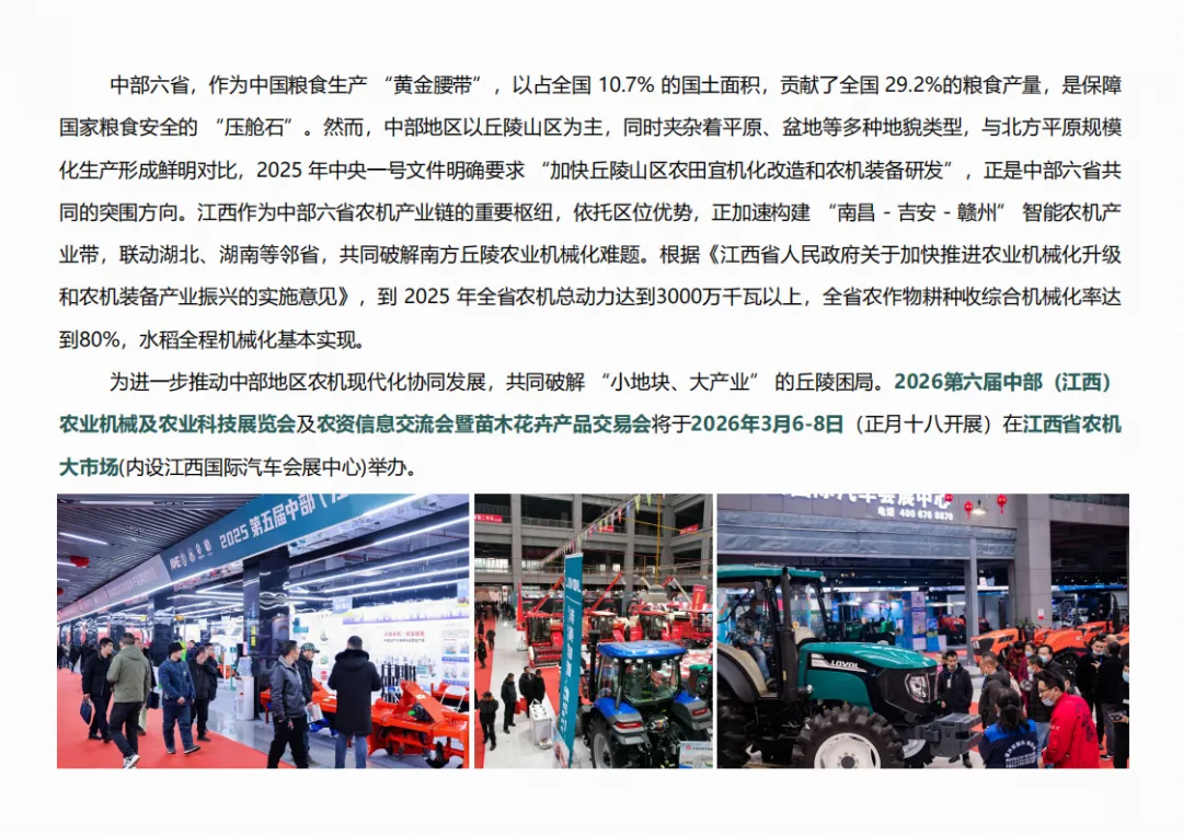 2026第六届中部(江西)农业机械及农业科技展览会欢迎您