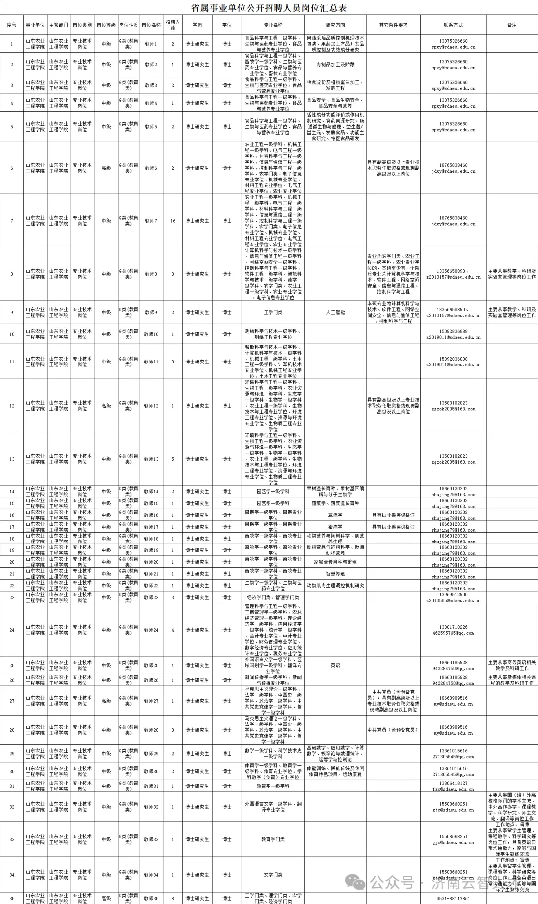 根据事业单位公开招聘有关规定,结合工作需要,山东农业工程学院拟面向社会公开招聘博士研究生和具有高级专业技术职务任职资格或现聘高级岗位等高层次专业技术人才,岗位及条件详见《省属事业单位公开招聘人员岗位汇总表》(附件1)。