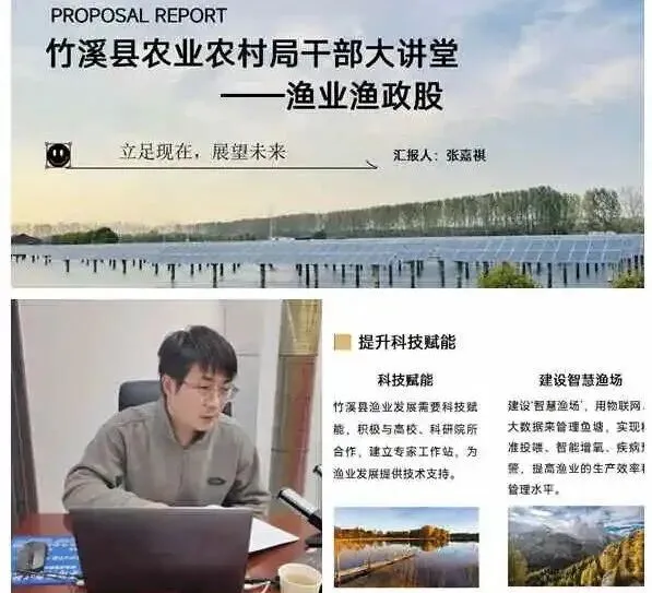 渔业渔政股以《渔业——乡村振兴的隐形引擎》为题,从渔业的多重价值、国家“十四五”渔业规划、省市渔业产业政策清单和我县渔业发展现状与挑战、突围方向与计划等方面和大家进行了交流分享。