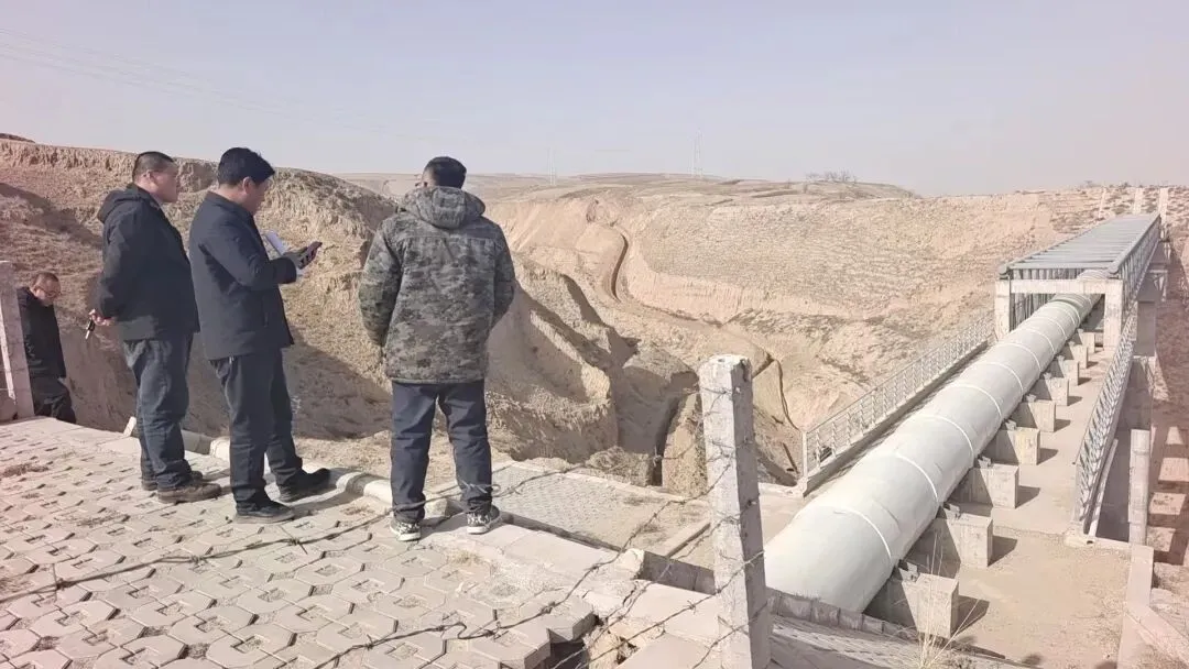 2.海原县2025年增发国债高标准农田建设项目(改造提升片区),查看输水管道跨沟现场