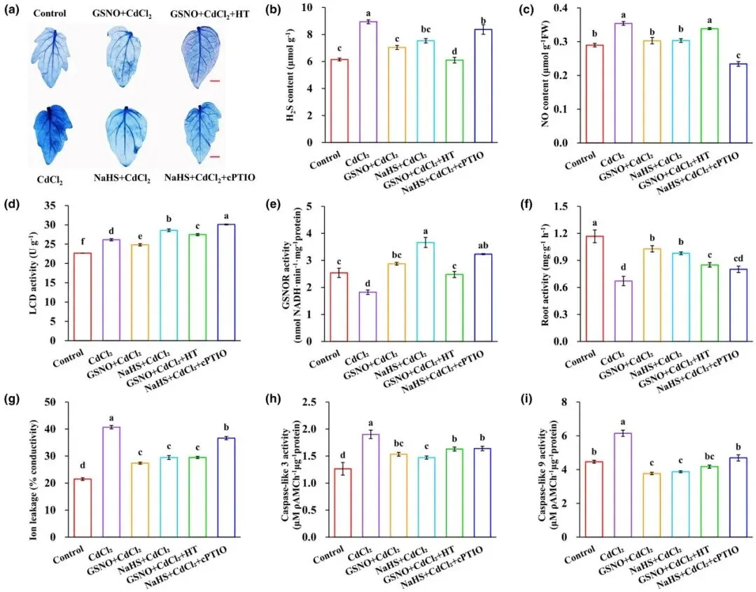 重金属Cd污染严重威胁农业生产与农产品安全。Cd胁迫可诱导植物发生PCD,进而影响生长与发育。NO和H₂S作为重要的气体信号分子,在植物响应非生物胁迫中发挥关键作用,然而二者在Cd诱导PCD中的协同调控机制尚不清楚。