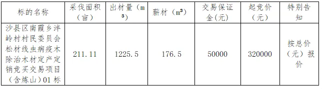 【林木所有权】20260210(周二)三明市沙县区南霞乡泮岭村村民委员会松材线虫病疫木除治木材定产定销竞买交易项目(含炼山)01标