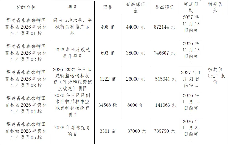【营林管护】20260205(周四)福建省永安国有林场2026年度营林工程项目(第一批)