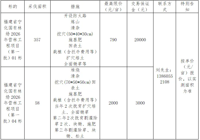 【营林管护】20260205(周四)福建省宁化国有林场2026年营林工程项目(第一批)