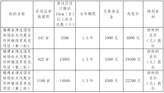 【林木所有权】20260206(周五)福建省清流国有林场松木伐蔸合作种植茯苓承包项目