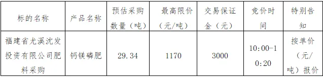 【涉林物资采购】20260205(周四)福建省尤溪沈发投资有限公司营林202601期肥料采购项目
