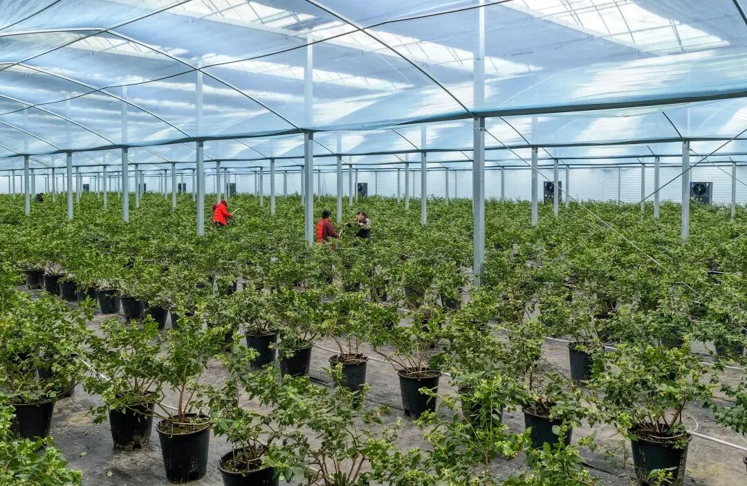 一排排蓝莓植株枝繁叶茂、长势喜人,首批 5 座连栋日光温室正式投产运营,这标志着总投资1.5亿元的现代化农业项目迈入产能释放新阶段,为武强县乡村振兴发展添上了浓墨重彩的一笔。