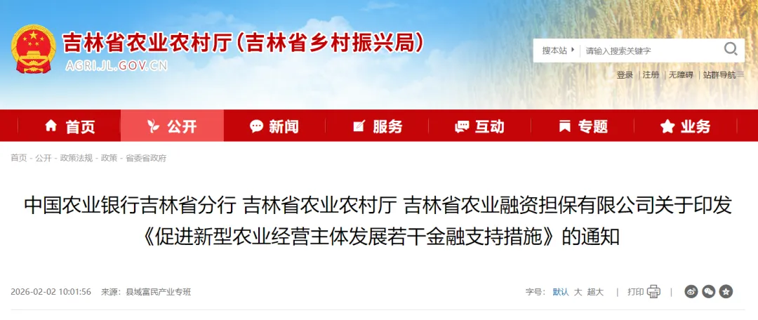 中国农业银行吉林省分行 吉林省农业农村厅 吉林省农业融资担保有限公司关于印发《促进新型农业经营主体发展若干金融支持措施》的通知