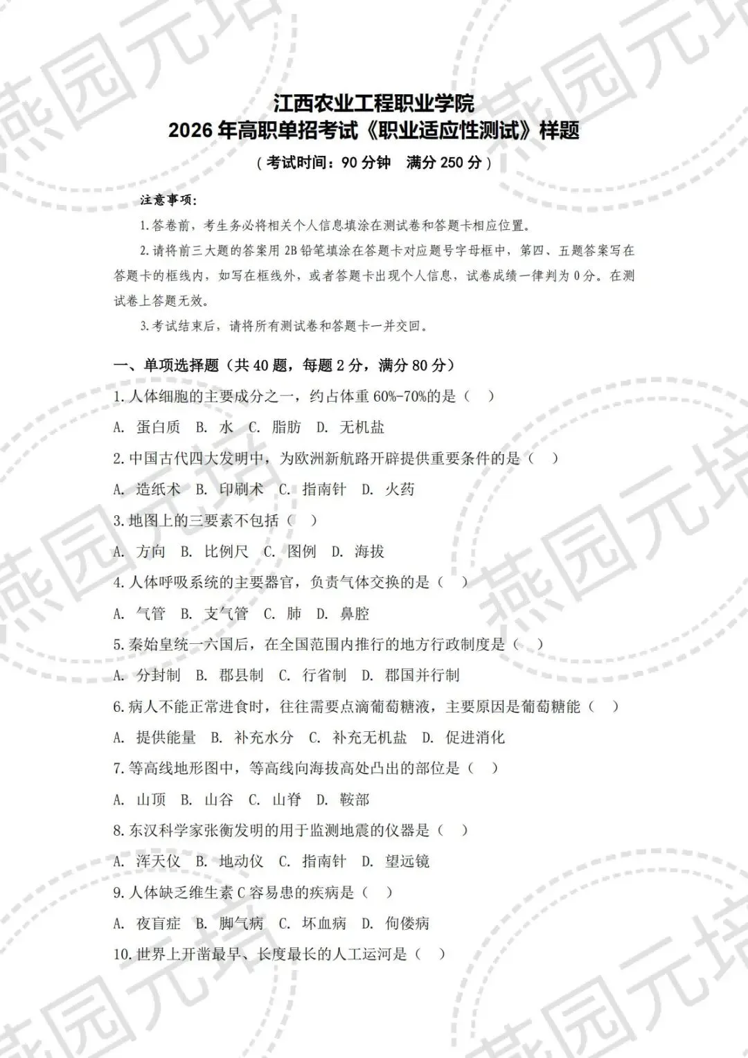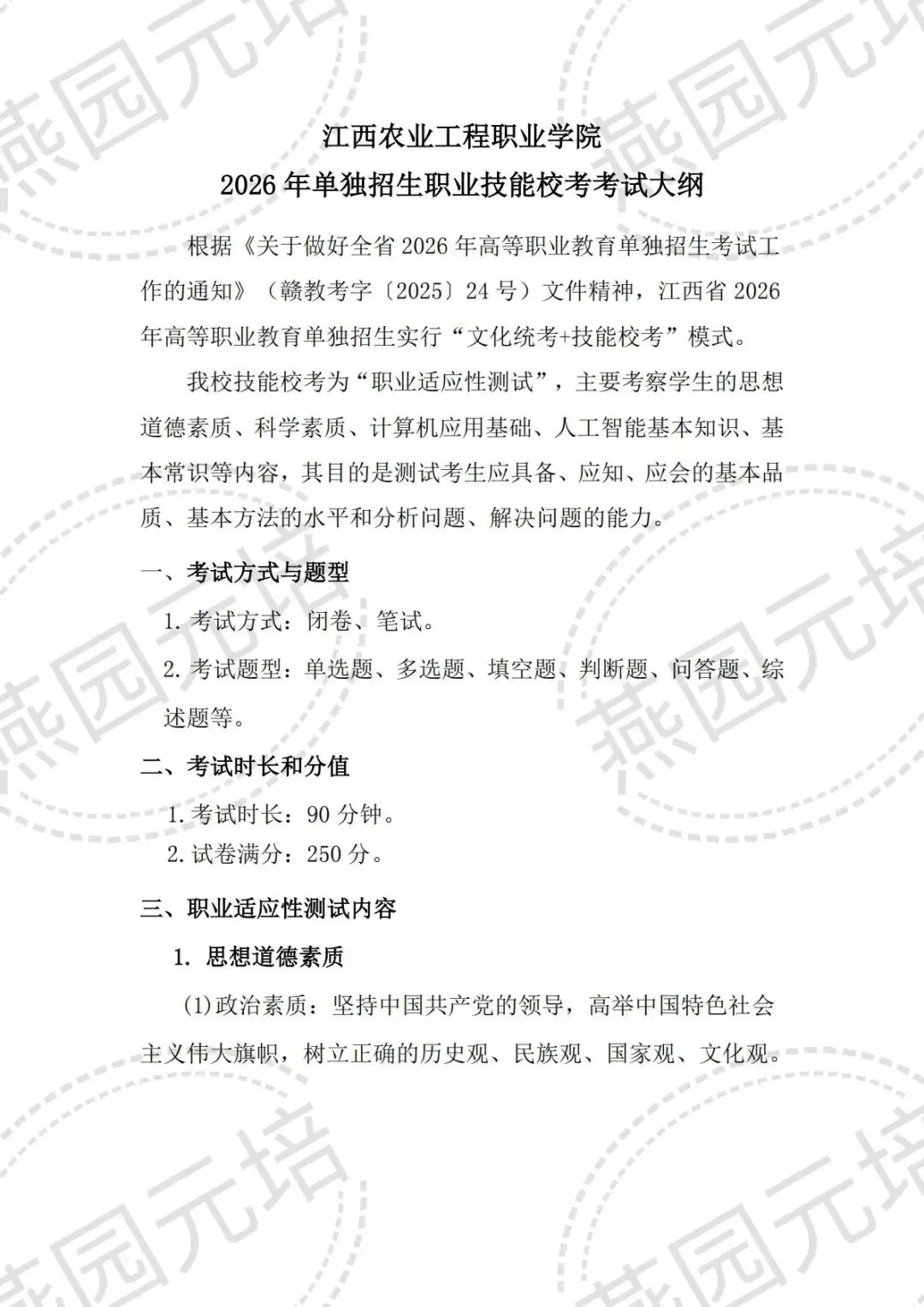 >江西农业工程职业学院2026年单招考试大纲