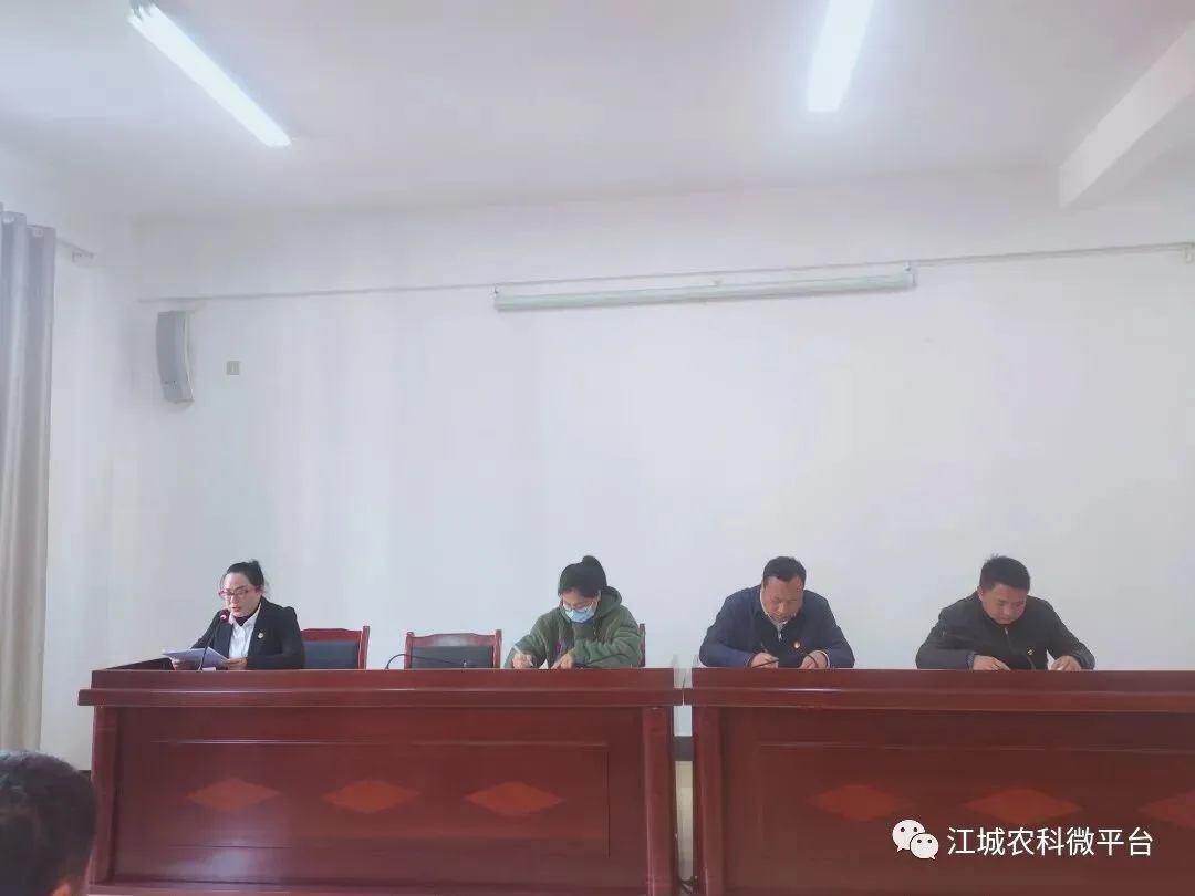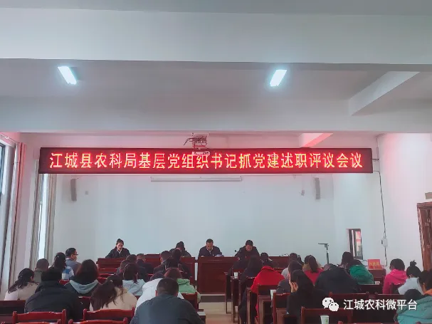江城县农业农村和科学技术局党总支组织召开2021年度党支部书记抓基层党建工作述职评议考核大会。局党组及领导班子成员、局党总支委员、各支部书记、全体党员、群众代表40余人参加了会议。