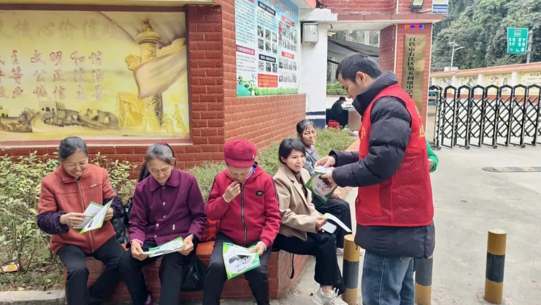 随着寒假来临,学生返乡,群众户外活动增多,森林火灾风险随之上升。阳圩镇林业站抓住这一关键节点,组织本站工作人员和护林员一同前往阳圩镇中小学周边,开展森林防火专项宣传活动。
