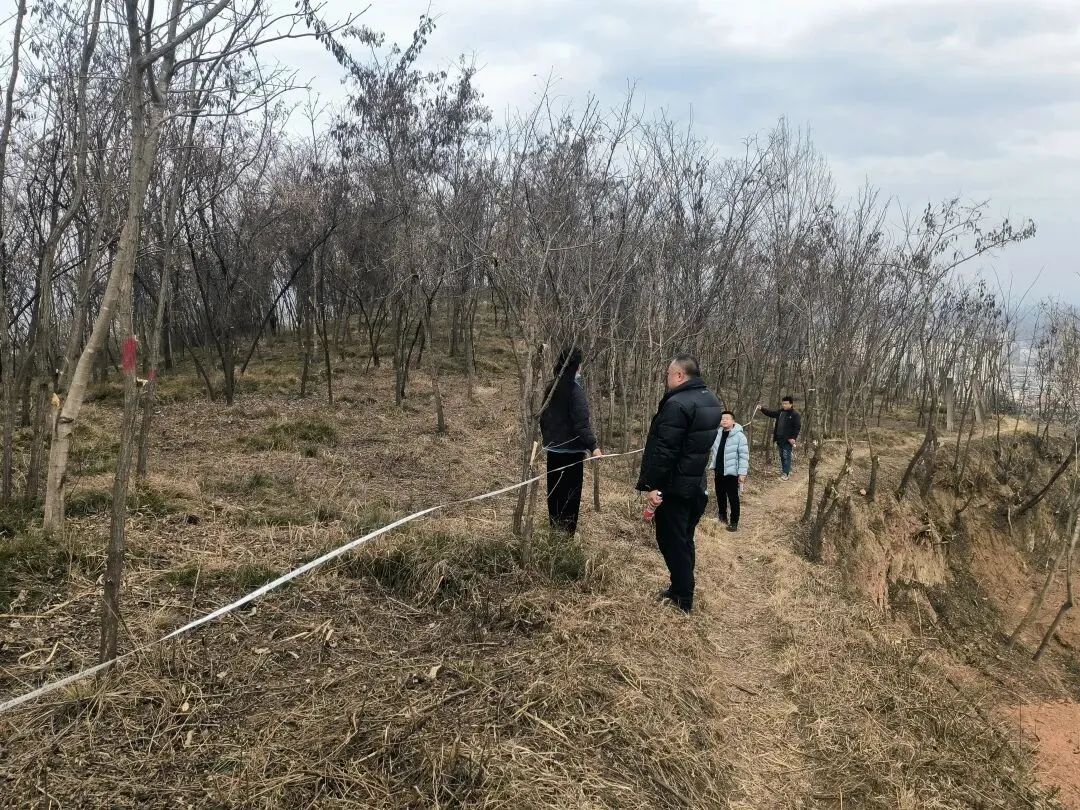 赵坝林场林政股和水泉检查站对王磨镇梨树村撂荒地整治区域进行核查。
