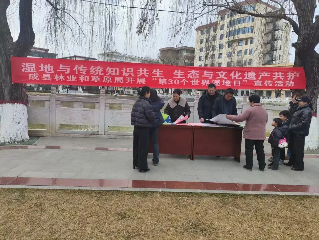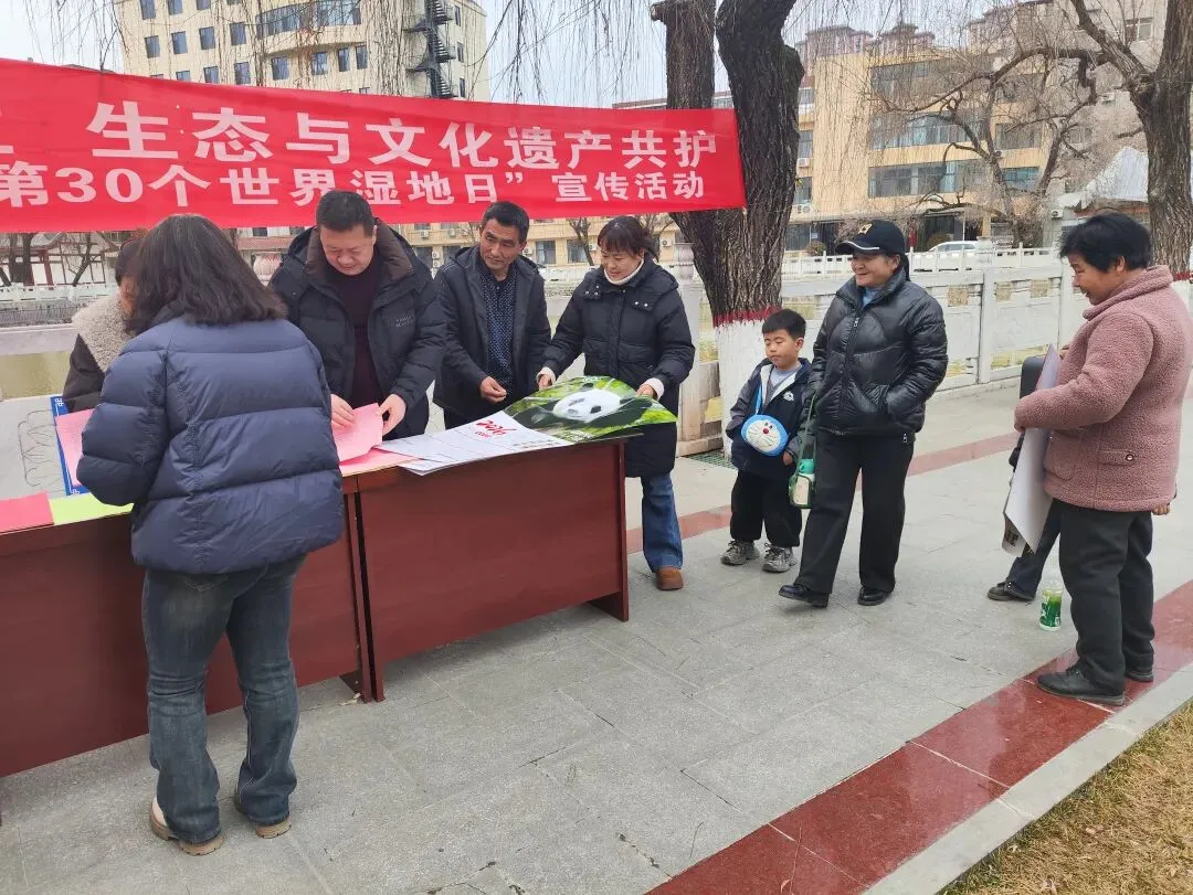 林业和草原局组织干部职工在裴公湖开展湿地保护日宣传活动。
