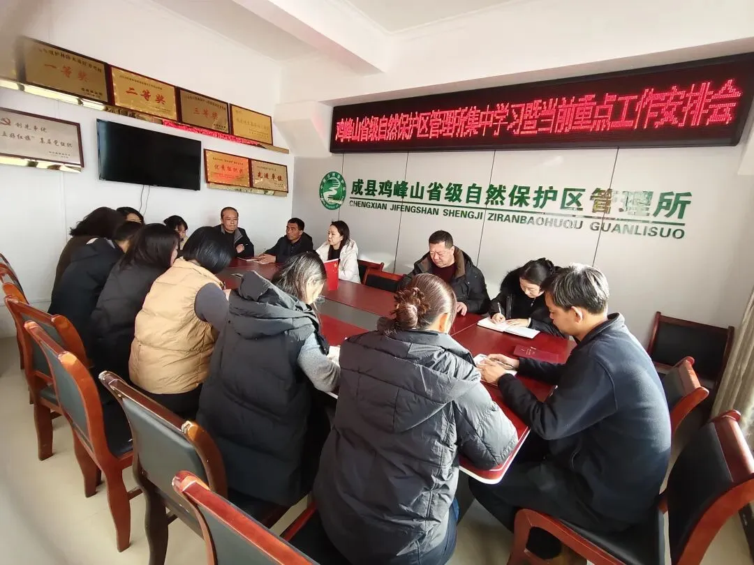 鸡峰山省级自然保护区管理所召开职工集中学习会,学习传达县“两会”精神,并对当前重点工作进行了安排。