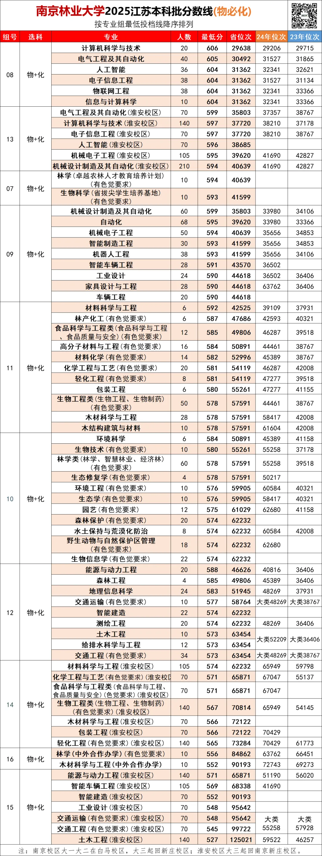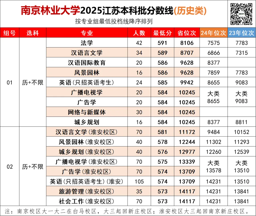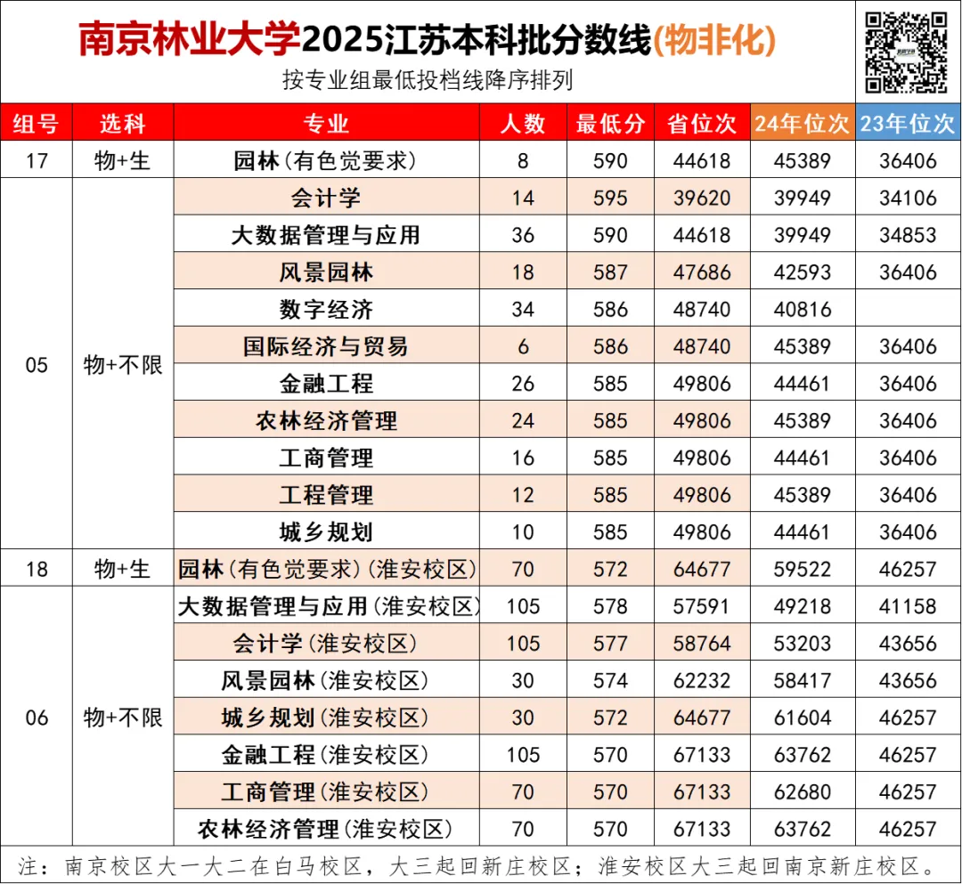 所以说,南京林业大学淮安校区,报考的性价比非常高!是江苏分数线最低的双一流大学!