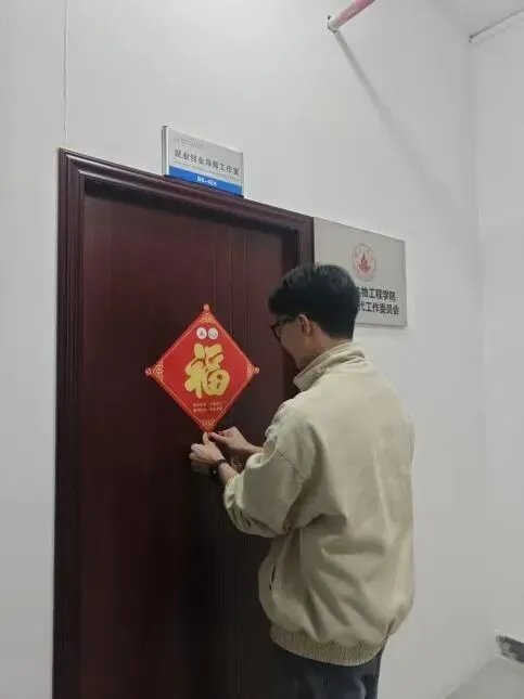 活动尾声,同学们分组前往学院领导、老师的办公室,亲手将“福”字张贴在门上,新春的喜庆随之在学院漾开。此次关怀活动,也在这份红火与祝福中温情定格。